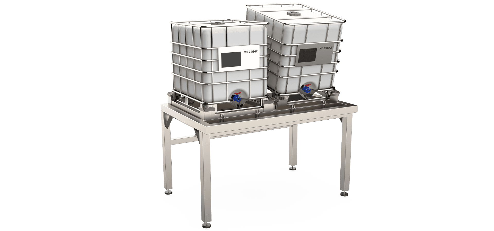 Every production environment is different. That’s why TFS IBC tiltters can be customized to meet the specific needs of your company. You can opt for either a lower outlet or an upper discharge, along with various operating options (such as tilting with foot or hand control). Additionally, extra features such as a raised frame for an ergonomic setup or a drip tray can be provided. Please consult one of our TFS specialists for all available possibilities.